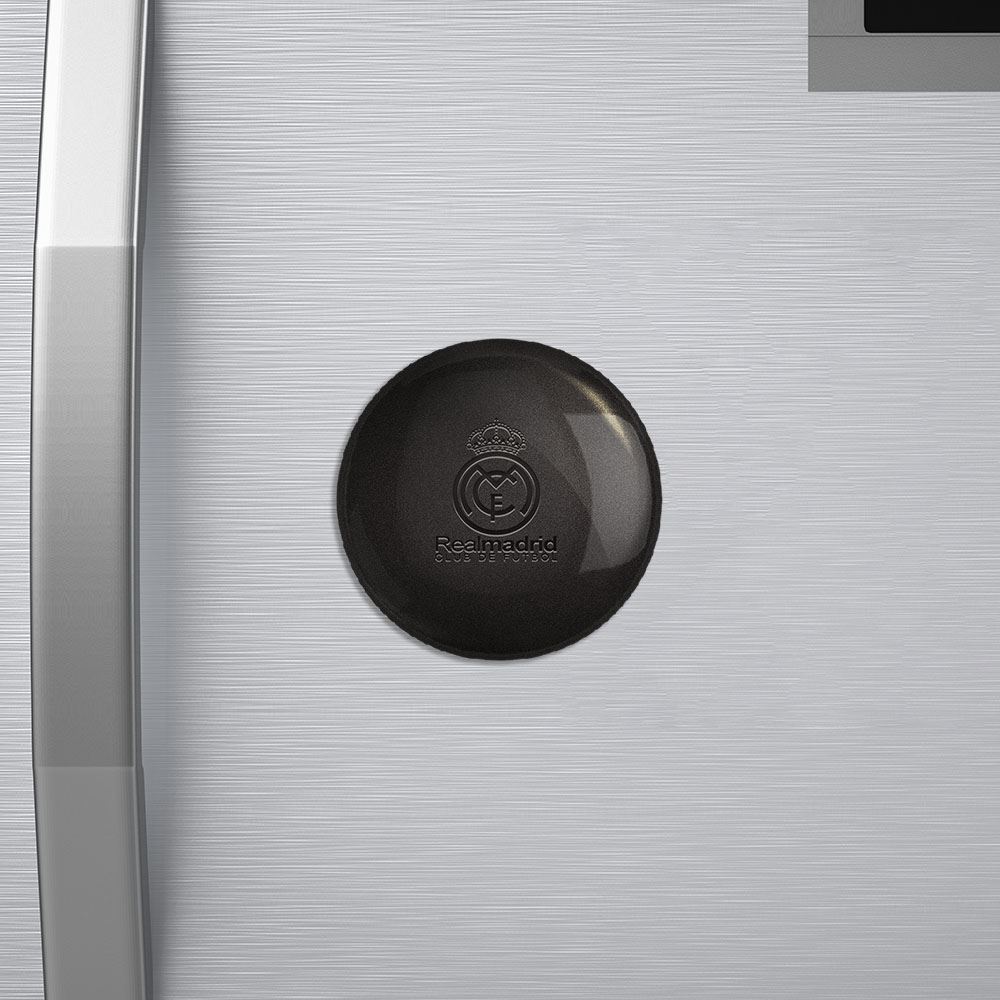 مگنت باشگاه رئال مادرید خندالو با روکش سلفون مات مخملی ضدخش و قطعه پشتی فلزی تولید شده است که آهنربای اتمی بکار برده شده در محصول، بصورت مخفی تعبیه شده ودیده نمی شود. ضمن اینکه گیرایی بسیار بالایی داشته و به هیچ عنوان از روی یخچال نمی افتد.