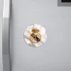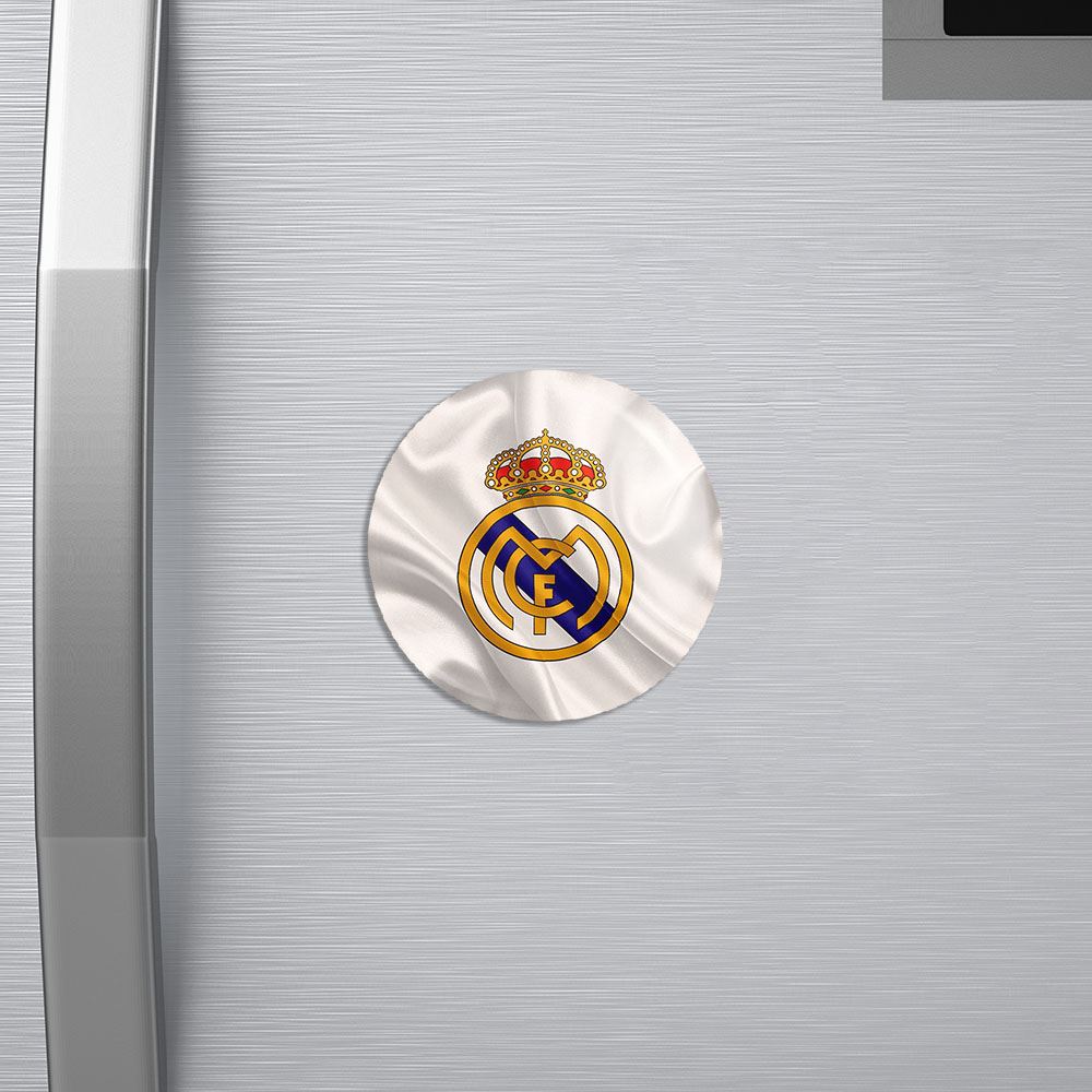مگنت باشگاه رئال مادرید خندالو با روکش سلفون مات مخملی ضدخش و قطعه پشتی فلزی تولید شده است که آهنربای اتمی بکار برده شده در محصول، بصورت مخفی تعبیه شده ودیده نمی شود. ضمن اینکه گیرایی بسیار بالایی داشته و به هیچ عنوان از روی یخچال نمی افتد.