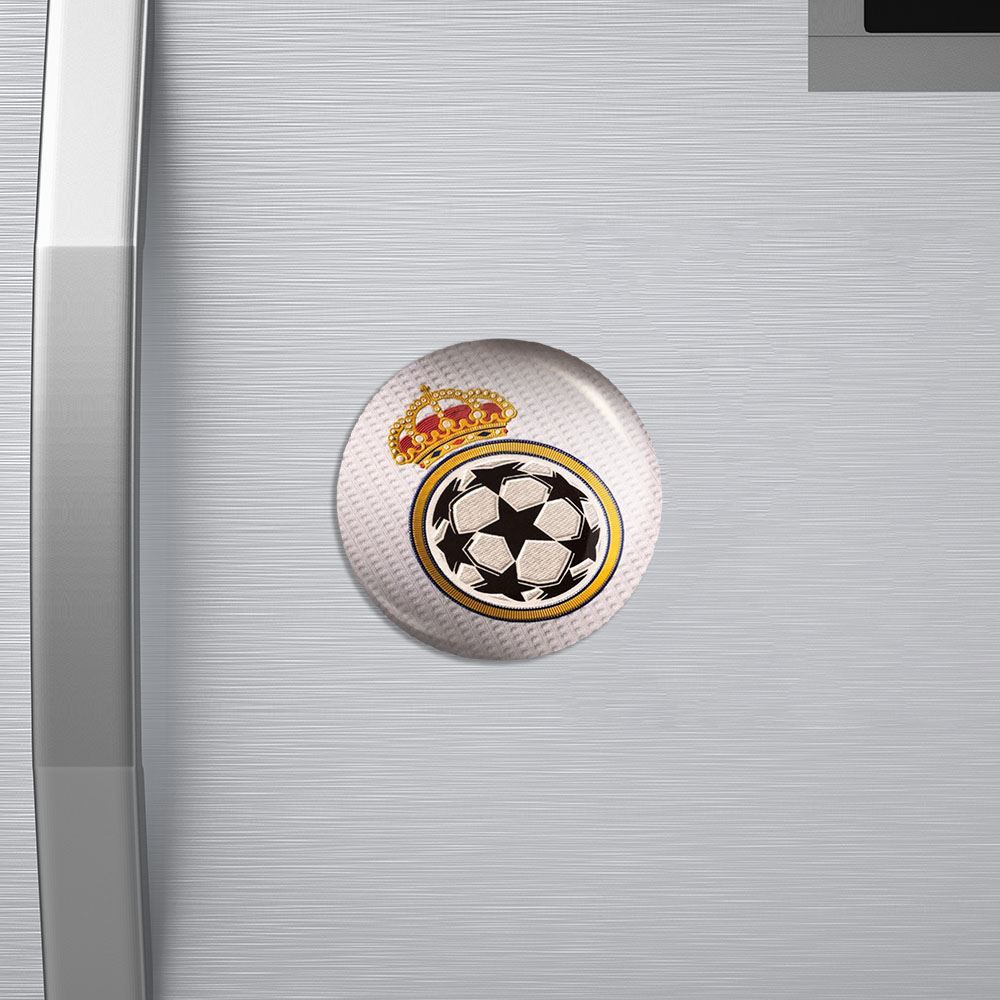 مگنت باشگاه رئال مادرید Real Madrid خندالو با روکش سلفون مات مخملی ضدخش و قطعه پشتی فلزی تولید شده است که آهنربای اتمی بکار برده شده در محصول، بصورت مخفی تعبیه شده ودیده نمی شود. ضمن اینکه گیرایی بسیار بالایی داشته و به هیچ عنوان از روی یخچال نمی افتد.