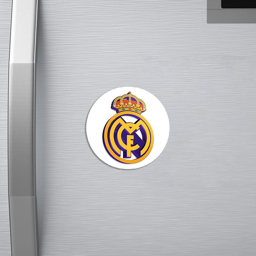 مگنت باشگاه رئال مادرید Real Madrid خندالو با روکش سلفون مات مخملی ضدخش و قطعه پشتی فلزی تولید شده است که آهنربای اتمی بکار برده شده در محصول، بصورت مخفی تعبیه شده ودیده نمی شود. ضمن اینکه گیرایی بسیار بالایی داشته و به هیچ عنوان از روی یخچال نمی افتد.