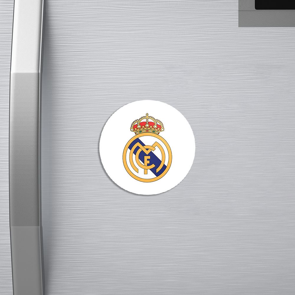 مگنت باشگاه رئال مادرید Real Madrid خندالو با روکش سلفون مات مخملی ضدخش و قطعه پشتی فلزی تولید شده است که آهنربای اتمی بکار برده شده در محصول، بصورت مخفی تعبیه شده ودیده نمی شود. ضمن اینکه گیرایی بسیار بالایی داشته و به هیچ عنوان از روی یخچال نمی افتد.