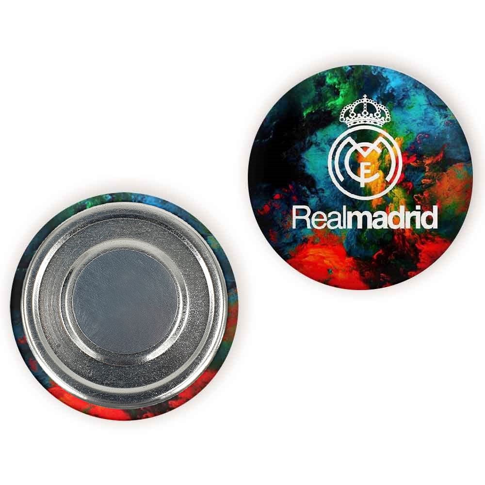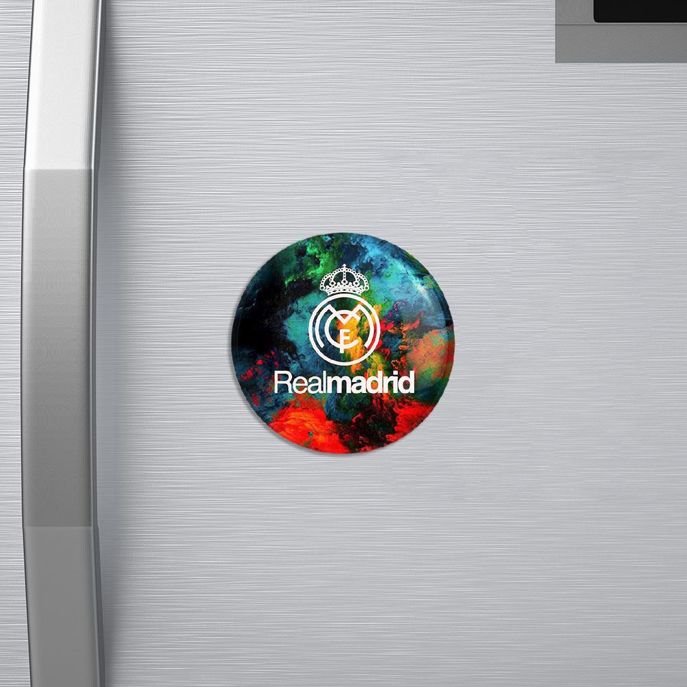 مگنت باشگاه رئال مادرید Real Madrid خندالو با روکش سلفون مات مخملی ضدخش و قطعه پشتی فلزی تولید شده است که آهنربای اتمی بکار برده شده در محصول، بصورت مخفی تعبیه شده ودیده نمی شود. ضمن اینکه گیرایی بسیار بالایی داشته و به هیچ عنوان از روی یخچال نمی افتد.