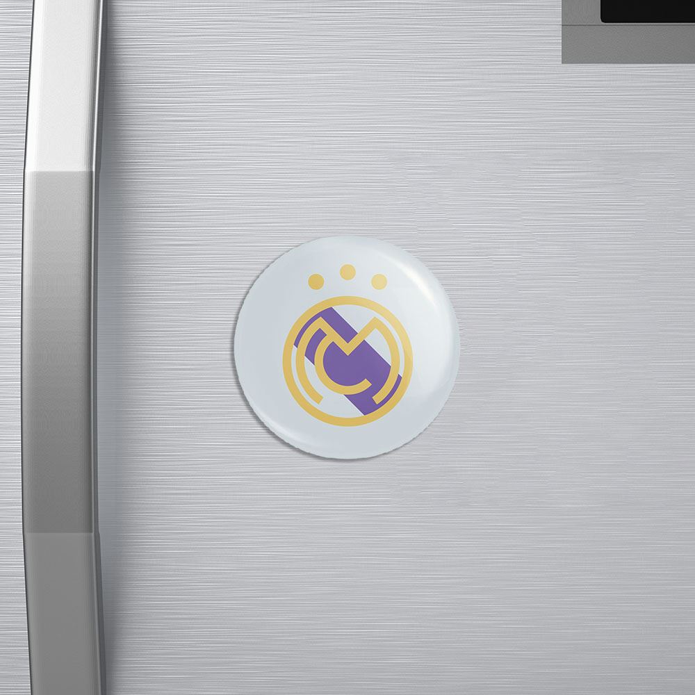 مگنت باشگاه رئال مادرید Real Madrid خندالو با روکش سلفون مات مخملی ضدخش و قطعه پشتی فلزی تولید شده است که آهنربای اتمی بکار برده شده در محصول، بصورت مخفی تعبیه شده ودیده نمی شود. ضمن اینکه گیرایی بسیار بالایی داشته و به هیچ عنوان از روی یخچال نمی افتد.
