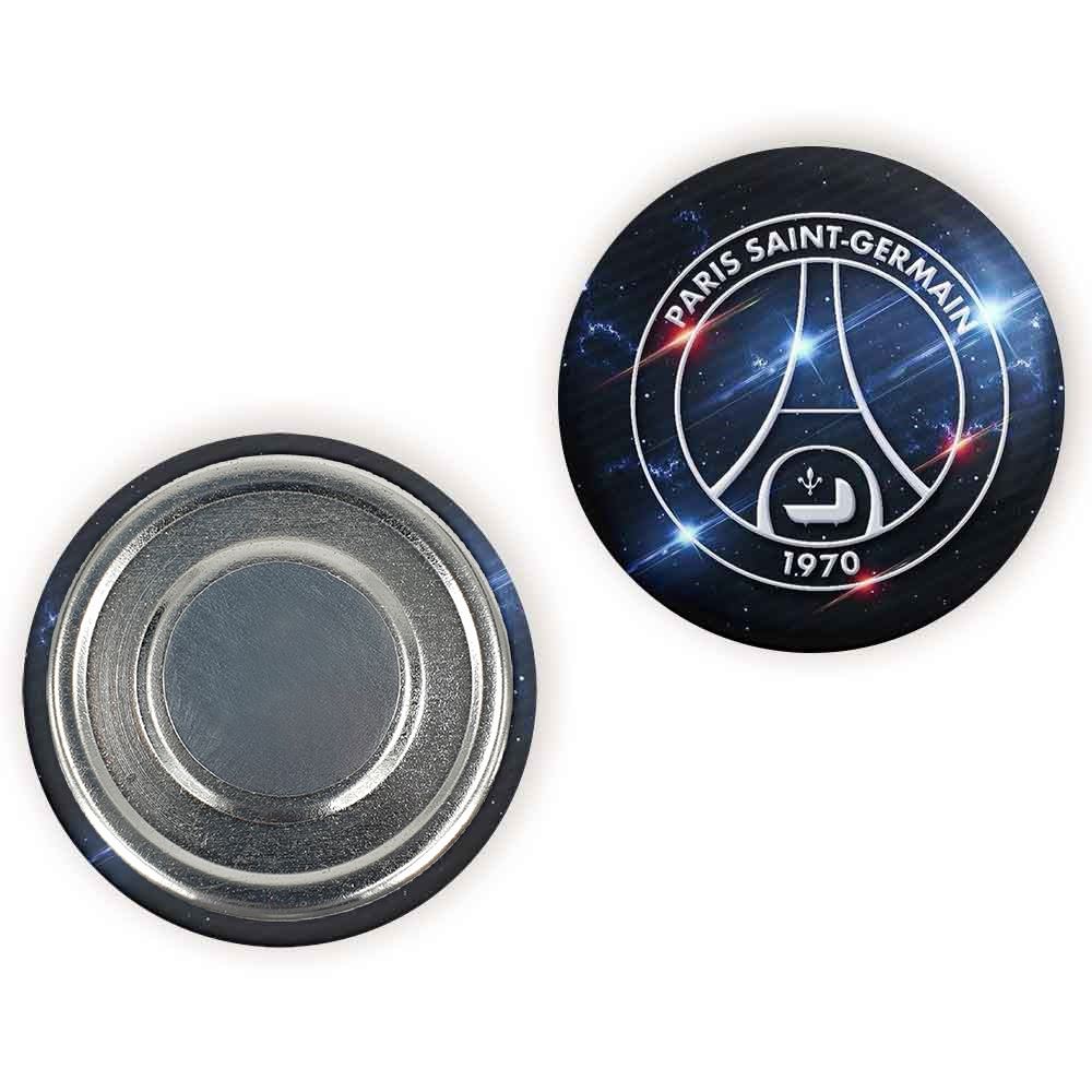 مگنت باشگاه پاری سن ژرمن خندالو با روکش سلفون مات مخملی ضدخش و قطعه پشتی فلزی تولید شده است که آهنربای اتمی بکار برده شده در محصول، بصورت مخفی تعبیه شده ودیده نمی شود. ضمن اینکه گیرایی بسیار بالایی داشته و به هیچ عنوان از روی یخچال نمی افتد.