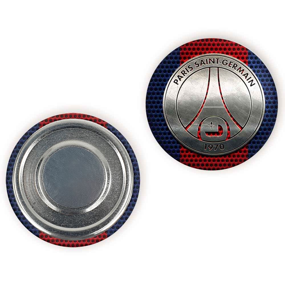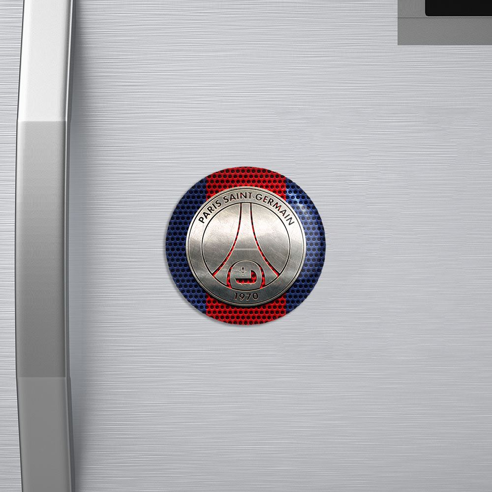 مگنت باشگاه پاری سن ژرمن خندالو با روکش سلفون مات مخملی ضدخش و قطعه پشتی فلزی تولید شده است که آهنربای اتمی بکار برده شده در محصول، بصورت مخفی تعبیه شده ودیده نمی شود. ضمن اینکه گیرایی بسیار بالایی داشته و به هیچ عنوان از روی یخچال نمی افتد.