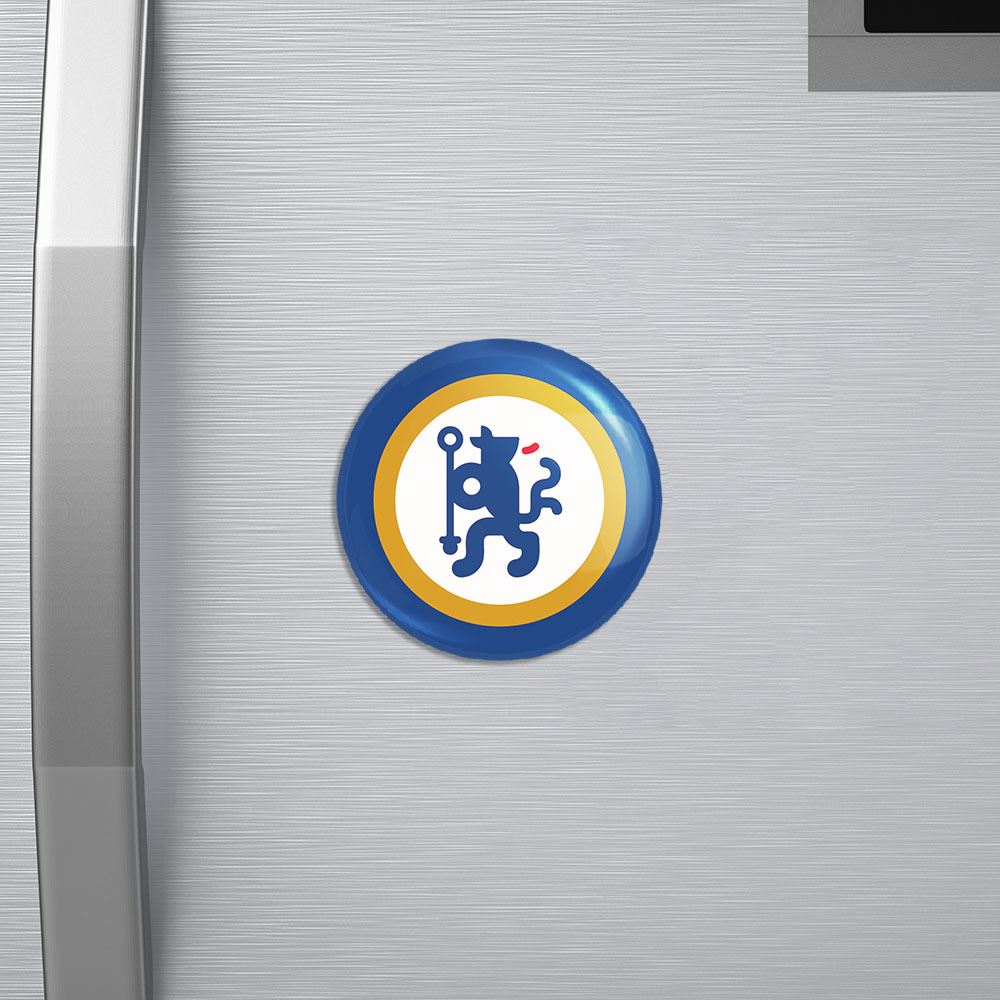 مگنت باشگاه چلسی Chelsea خندالو با روکش سلفون مات مخملی ضدخش و قطعه پشتی فلزی تولید شده است که آهنربای اتمی بکار برده شده در محصول، بصورت مخفی تعبیه شده ودیده نمی شود. ضمن اینکه گیرایی بسیار بالایی داشته و به هیچ عنوان از روی یخچال نمی افتد.