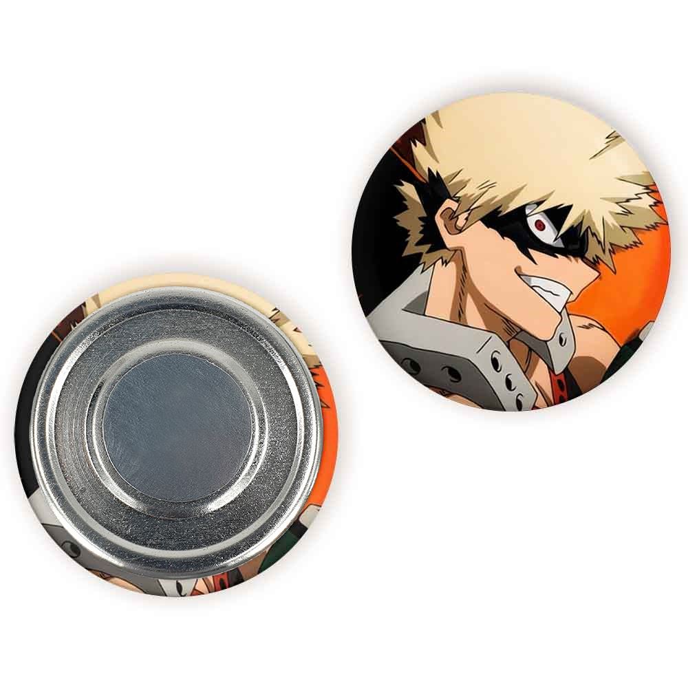 مگنت باکوگو کاتسوکی انیمه آکادمی قهرمان من خندالو با روکش سلفون مات مخملی ضدخش و قطعه پشتی فلزی تولید شده است که آهنربای اتمی بکار برده شده در محصول، بصورت مخفی تعبیه شده ودیده نمی شود. ضمن اینکه گیرایی بسیار بالایی داشته و به هیچ عنوان از روی یخچال نمی افتد.