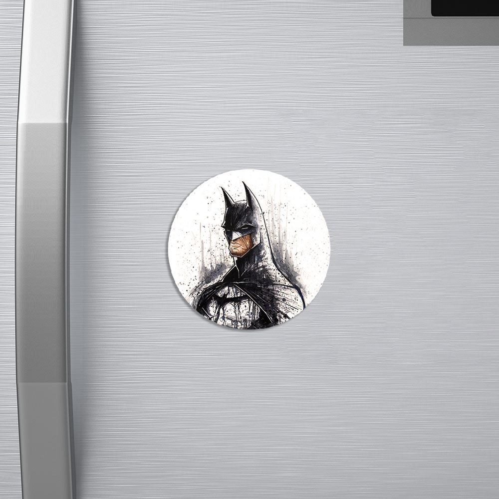 مگنت بتمن Batman خندالو با روکش سلفون مات مخملی ضدخش و قطعه پشتی فلزی تولید شده است که آهنربای اتمی بکار برده شده در محصول، بصورت مخفی تعبیه شده ودیده نمی شود. ضمن اینکه گیرایی بسیار بالایی داشته و به هیچ عنوان از روی یخچال نمی افتد.