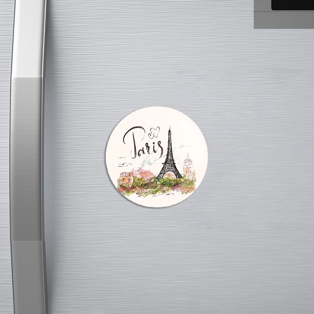 مگنت برج ایفل خندالو با روکش سلفون مات مخملی ضدخش و قطعه پشتی فلزی تولید شده است که آهنربای اتمی بکار برده شده در محصول، بصورت مخفی تعبیه شده ودیده نمی شود. ضمن اینکه گیرایی بسیار بالایی داشته و به هیچ عنوان از روی یخچال نمی افتد.