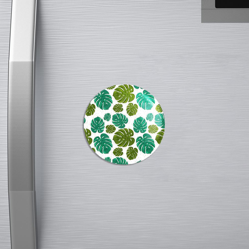 مگنت برگ انجیری خندالو با روکش سلفون مات مخملی ضدخش و قطعه پشتی فلزی تولید شده است که آهنربای اتمی بکار برده شده در محصول، بصورت مخفی تعبیه شده ودیده نمی شود. ضمن اینکه گیرایی بسیار بالایی داشته و به هیچ عنوان از روی یخچال نمی افتد.
