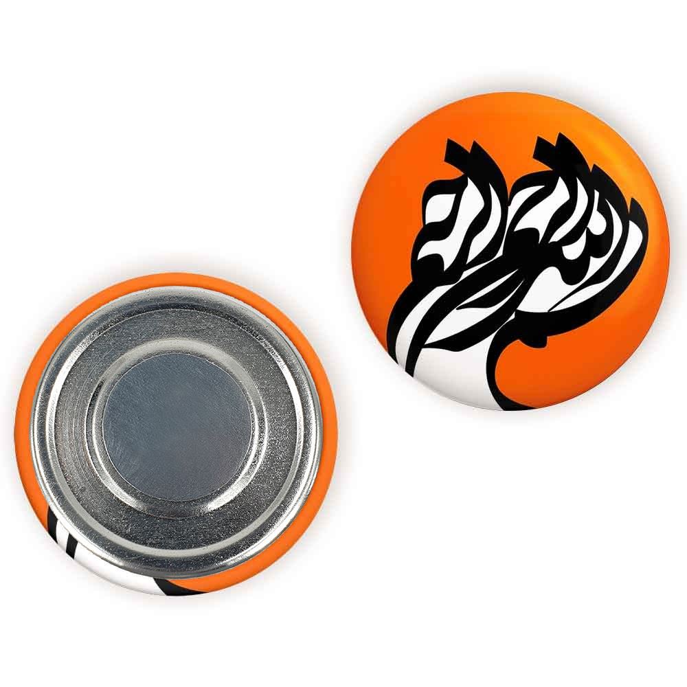 مگنت بسم الله الرحمن الرحیم خندالو با روکش سلفون مات مخملی ضدخش و قطعه پشتی فلزی تولید شده است که آهنربای اتمی بکار برده شده در محصول، بصورت مخفی تعبیه شده ودیده نمی شود. ضمن اینکه گیرایی بسیار بالایی داشته و به هیچ عنوان از روی یخچال نمی افتد.