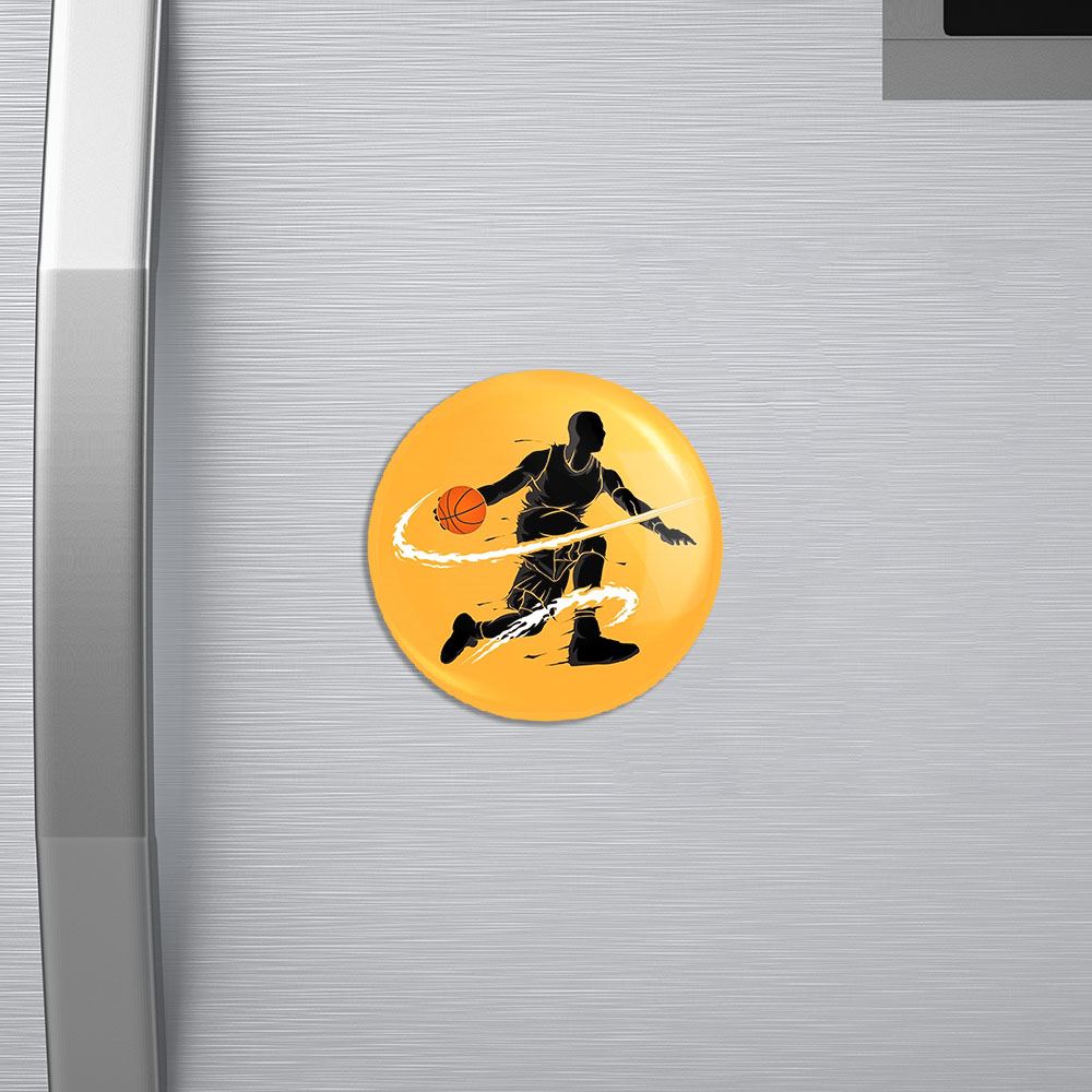 مگنت بسکتبال خندالو با روکش سلفون مات مخملی ضدخش و قطعه پشتی فلزی تولید شده است که آهنربای اتمی بکار برده شده در محصول، بصورت مخفی تعبیه شده ودیده نمی شود. ضمن اینکه گیرایی بسیار بالایی داشته و به هیچ عنوان از روی یخچال نمی افتد.