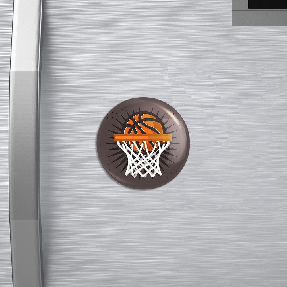 مگنت بسکتبال Basketball خندالو با روکش سلفون مات مخملی ضدخش و قطعه پشتی فلزی تولید شده است که آهنربای اتمی بکار برده شده در محصول، بصورت مخفی تعبیه شده ودیده نمی شود. ضمن اینکه گیرایی بسیار بالایی داشته و به هیچ عنوان از روی یخچال نمی افتد.