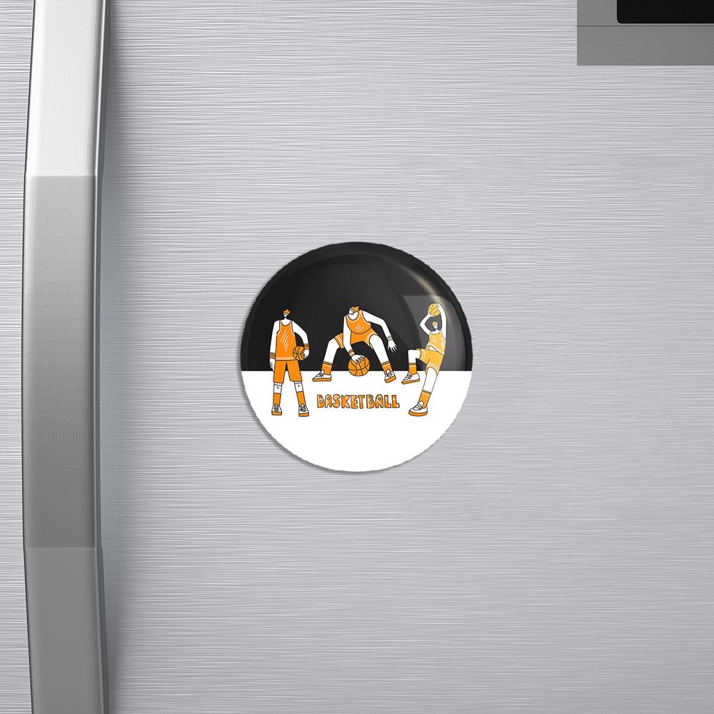 مگنت بسکتبال Basketball خندالو با روکش سلفون مات مخملی ضدخش و قطعه پشتی فلزی تولید شده است که آهنربای اتمی بکار برده شده در محصول، بصورت مخفی تعبیه شده ودیده نمی شود. ضمن اینکه گیرایی بسیار بالایی داشته و به هیچ عنوان از روی یخچال نمی افتد.
