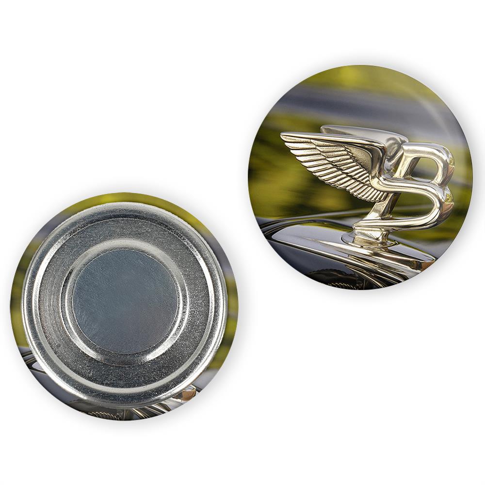مگنت بنتلی Bentley خندالو با روکش سلفون مات مخملی ضدخش و قطعه پشتی فلزی تولید شده است که آهنربای اتمی بکار برده شده در محصول، بصورت مخفی تعبیه شده ودیده نمی شود. ضمن اینکه گیرایی بسیار بالایی داشته و به هیچ عنوان از روی یخچال نمی افتد.