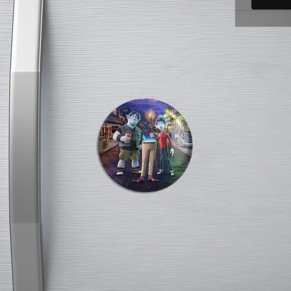 مگنت به پیش Onward خندالو با روکش سلفون مات مخملی ضدخش و قطعه پشتی فلزی تولید شده است که آهنربای اتمی بکار برده شده در محصول، بصورت مخفی تعبیه شده ودیده نمی شود. ضمن اینکه گیرایی بسیار بالایی داشته و به هیچ عنوان از روی یخچال نمی افتد.