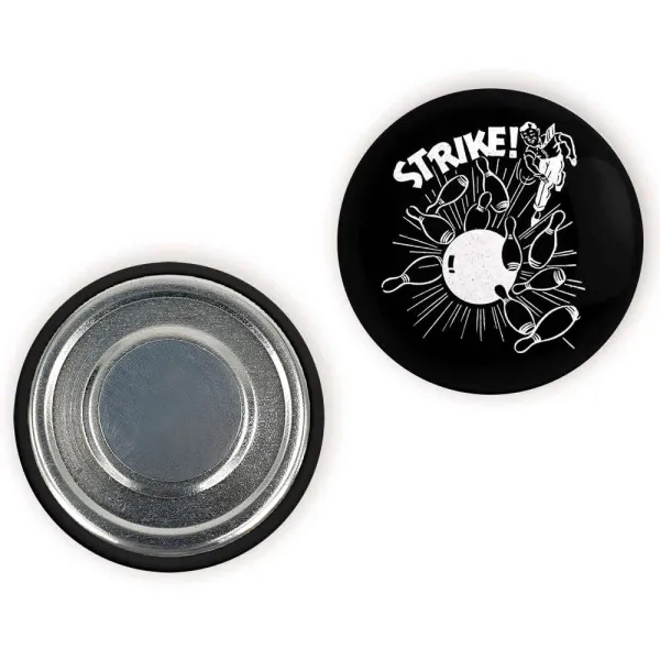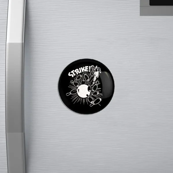 مگنت بولینگ Bowling خندالو با روکش سلفون مات مخملی ضدخش و قطعه پشتی فلزی تولید شده است که آهنربای اتمی بکار برده شده در محصول، بصورت مخفی تعبیه شده ودیده نمی شود. ضمن اینکه گیرایی بسیار بالایی داشته و به هیچ عنوان از روی یخچال نمی افتد.