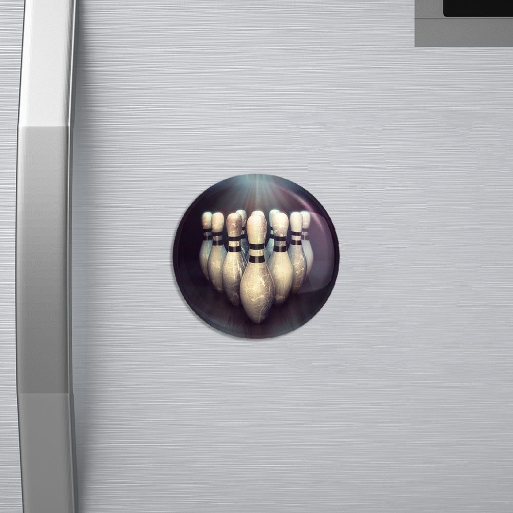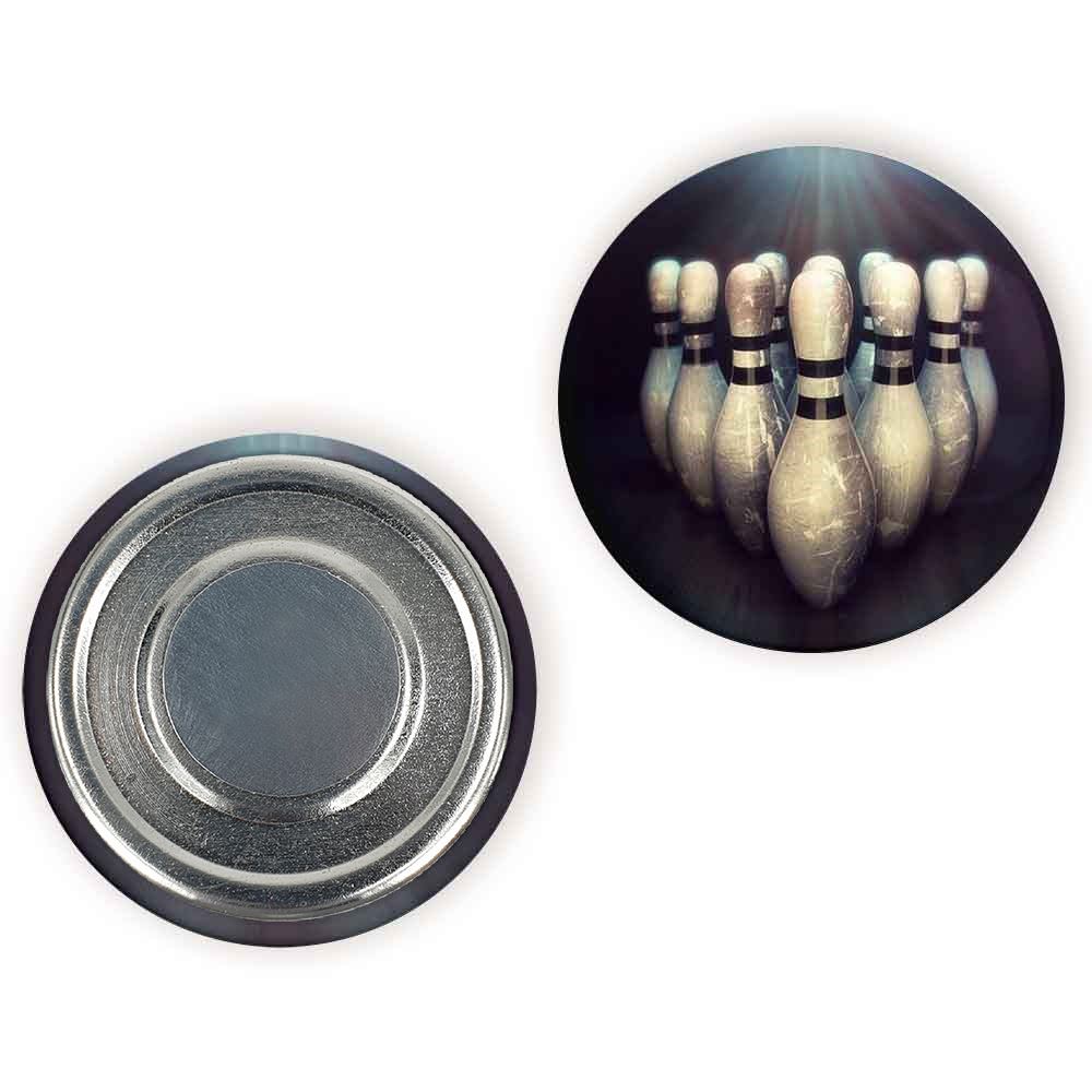 مگنت بولینگ Bowling خندالو با روکش سلفون مات مخملی ضدخش و قطعه پشتی فلزی تولید شده است که آهنربای اتمی بکار برده شده در محصول، بصورت مخفی تعبیه شده ودیده نمی شود. ضمن اینکه گیرایی بسیار بالایی داشته و به هیچ عنوان از روی یخچال نمی افتد.