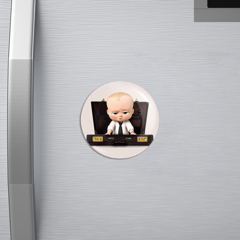 مگنت بچه رئیس Boss Baby خندالو با روکش سلفون مات مخملی ضدخش و قطعه پشتی فلزی تولید شده است که آهنربای اتمی بکار برده شده در محصول، بصورت مخفی تعبیه شده ودیده نمی شود. ضمن اینکه گیرایی بسیار بالایی داشته و به هیچ عنوان از روی یخچال نمی افتد.