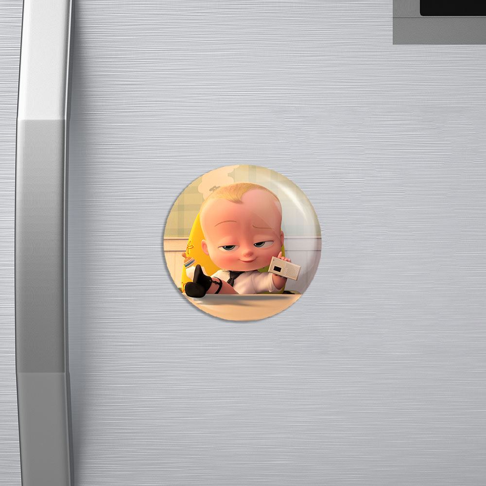 مگنت بچه رئیس Boss Baby خندالو با روکش سلفون مات مخملی ضدخش و قطعه پشتی فلزی تولید شده است که آهنربای اتمی بکار برده شده در محصول، بصورت مخفی تعبیه شده ودیده نمی شود. ضمن اینکه گیرایی بسیار بالایی داشته و به هیچ عنوان از روی یخچال نمی افتد.