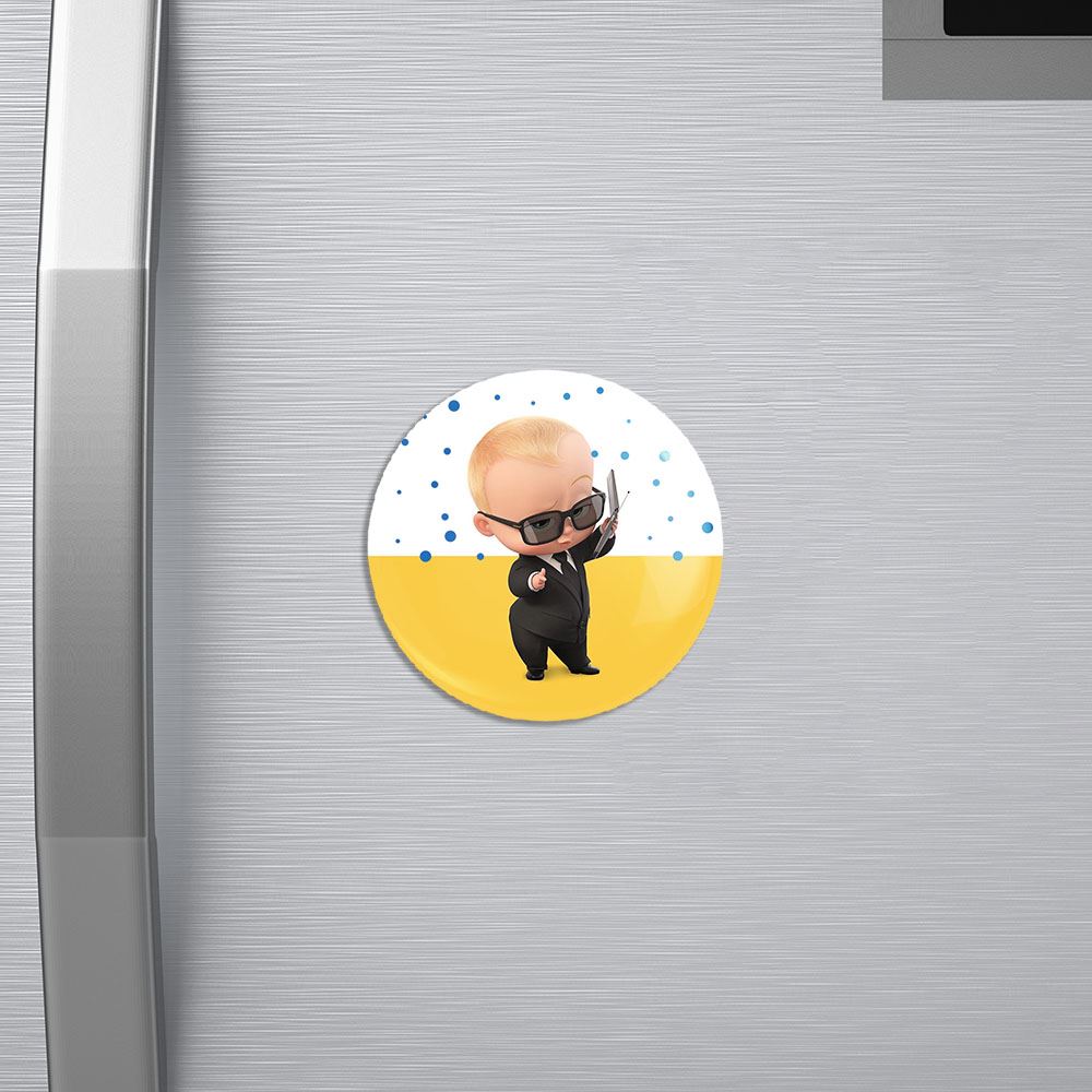مگنت بچه رئیس Boss Baby خندالو با روکش سلفون مات مخملی ضدخش و قطعه پشتی فلزی تولید شده است که آهنربای اتمی بکار برده شده در محصول، بصورت مخفی تعبیه شده ودیده نمی شود. ضمن اینکه گیرایی بسیار بالایی داشته و به هیچ عنوان از روی یخچال نمی افتد.