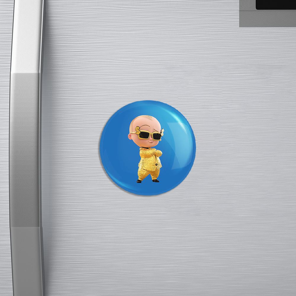 مگنت بچه رئیس Boss Baby خندالو با روکش سلفون مات مخملی ضدخش و قطعه پشتی فلزی تولید شده است که آهنربای اتمی بکار برده شده در محصول، بصورت مخفی تعبیه شده ودیده نمی شود. ضمن اینکه گیرایی بسیار بالایی داشته و به هیچ عنوان از روی یخچال نمی افتد.