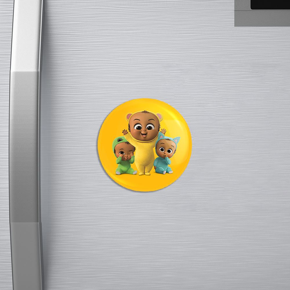 مگنت بچه رئیس Boss Baby خندالو با روکش سلفون مات مخملی ضدخش و قطعه پشتی فلزی تولید شده است که آهنربای اتمی بکار برده شده در محصول، بصورت مخفی تعبیه شده ودیده نمی شود. ضمن اینکه گیرایی بسیار بالایی داشته و به هیچ عنوان از روی یخچال نمی افتد.