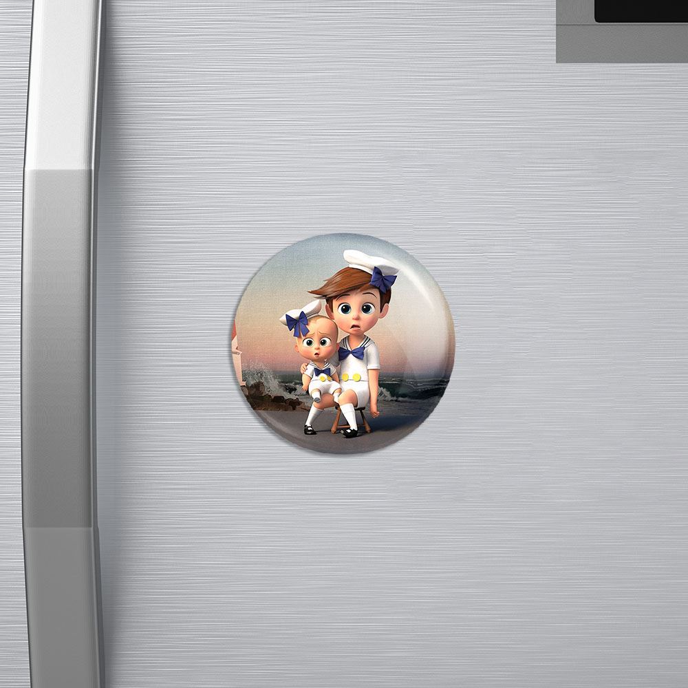 مگنت بچه رئیس Boss Baby خندالو با روکش سلفون مات مخملی ضدخش و قطعه پشتی فلزی تولید شده است که آهنربای اتمی بکار برده شده در محصول، بصورت مخفی تعبیه شده ودیده نمی شود. ضمن اینکه گیرایی بسیار بالایی داشته و به هیچ عنوان از روی یخچال نمی افتد.