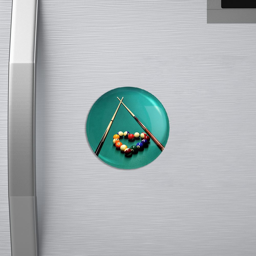 مگنت بیلیارد Billiard خندالو با روکش سلفون مات مخملی ضدخش و قطعه پشتی فلزی تولید شده است که آهنربای اتمی بکار برده شده در محصول، بصورت مخفی تعبیه شده ودیده نمی شود. ضمن اینکه گیرایی بسیار بالایی داشته و به هیچ عنوان از روی یخچال نمی افتد.