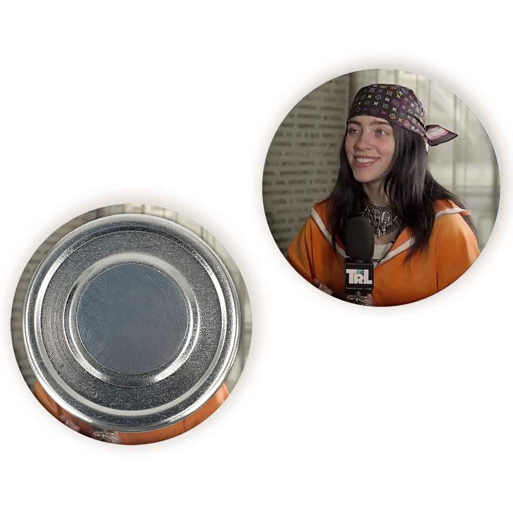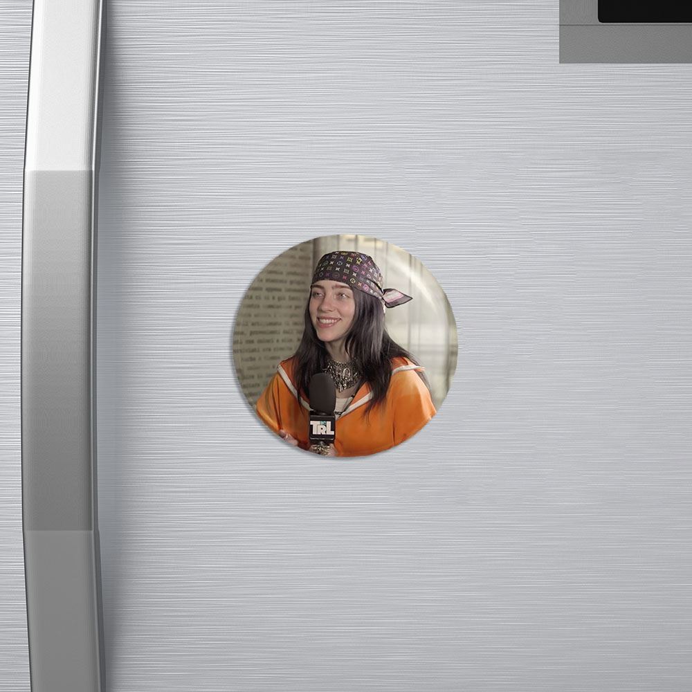 مگنت بیلی آیلیش Billie Eilish خندالو با روکش سلفون مات مخملی ضدخش و قطعه پشتی فلزی تولید شده است که آهنربای اتمی بکار برده شده در محصول، بصورت مخفی تعبیه شده ودیده نمی شود. ضمن اینکه گیرایی بسیار بالایی داشته و به هیچ عنوان از روی یخچال نمی افتد.