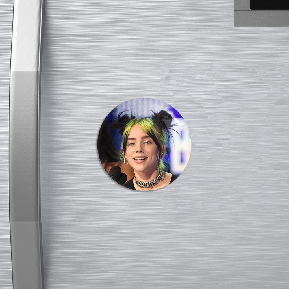مگنت بیلی آیلیش Billie Eilish خندالو با روکش سلفون مات مخملی ضدخش و قطعه پشتی فلزی تولید شده است که آهنربای اتمی بکار برده شده در محصول، بصورت مخفی تعبیه شده ودیده نمی شود. ضمن اینکه گیرایی بسیار بالایی داشته و به هیچ عنوان از روی یخچال نمی افتد.