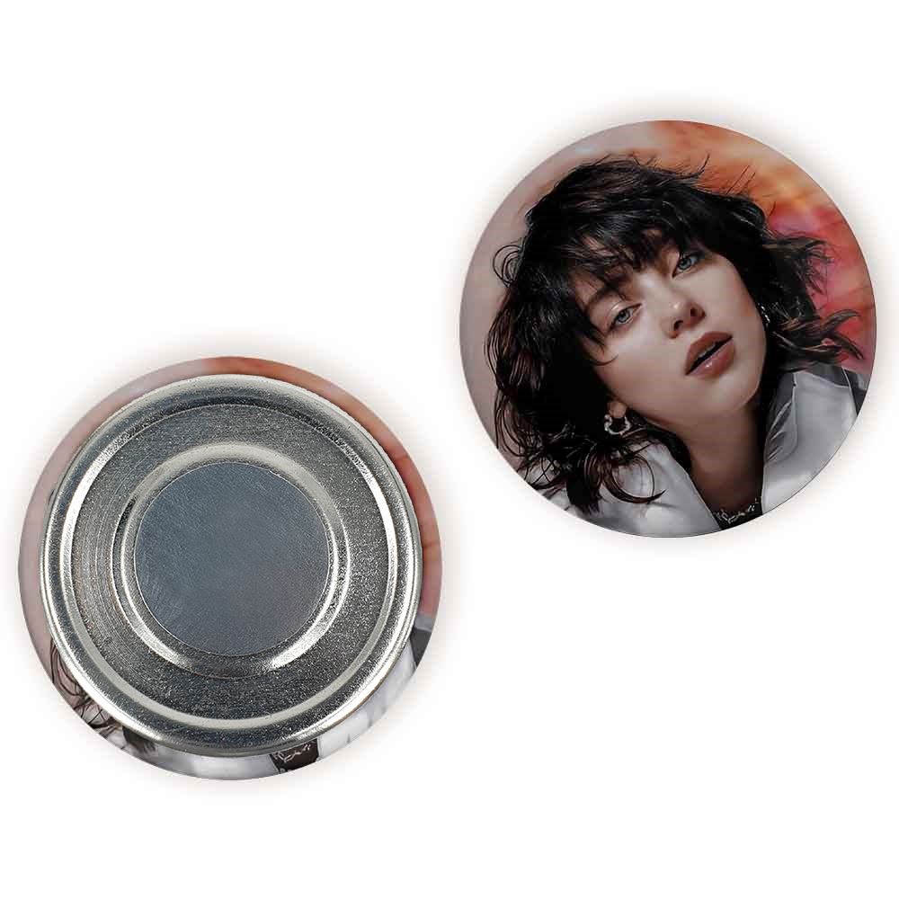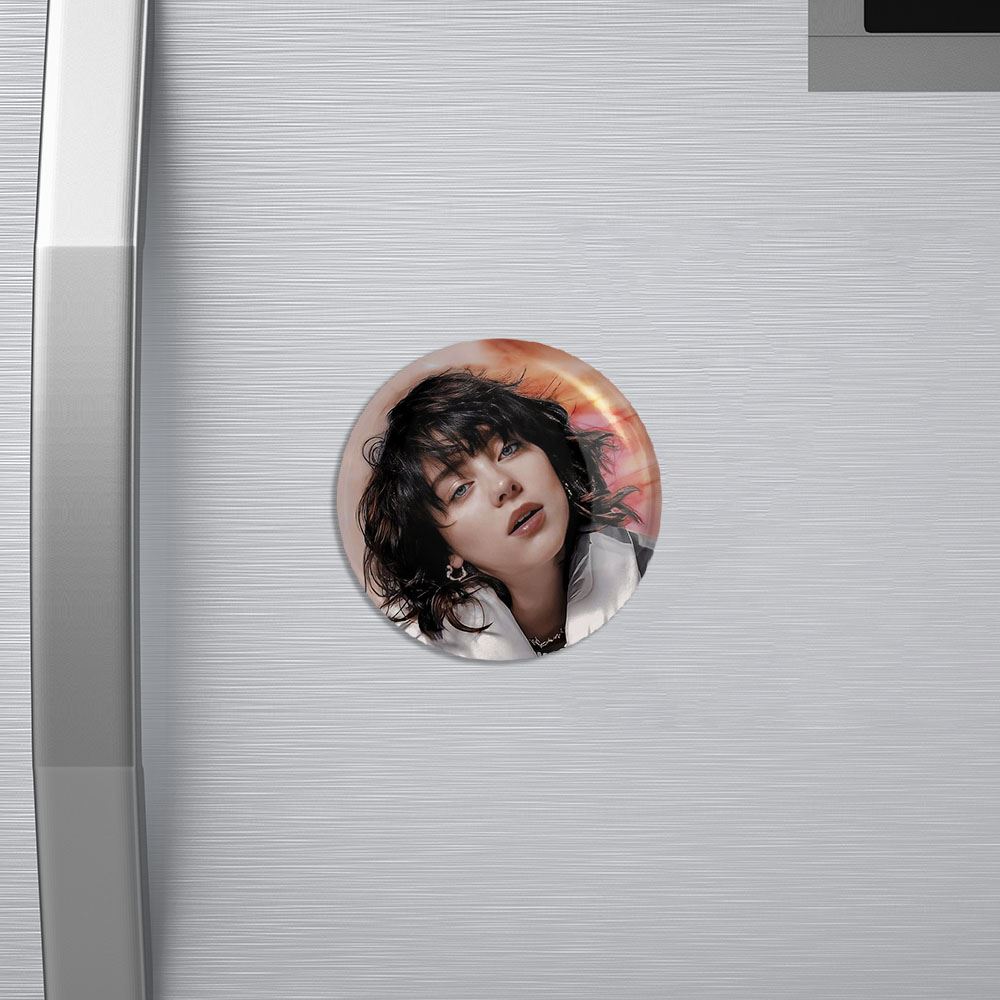 مگنت بیلی آیلیش Billie Eilish خندالو با روکش سلفون مات مخملی ضدخش و قطعه پشتی فلزی تولید شده است که آهنربای اتمی بکار برده شده در محصول، بصورت مخفی تعبیه شده ودیده نمی شود. ضمن اینکه گیرایی بسیار بالایی داشته و به هیچ عنوان از روی یخچال نمی افتد.