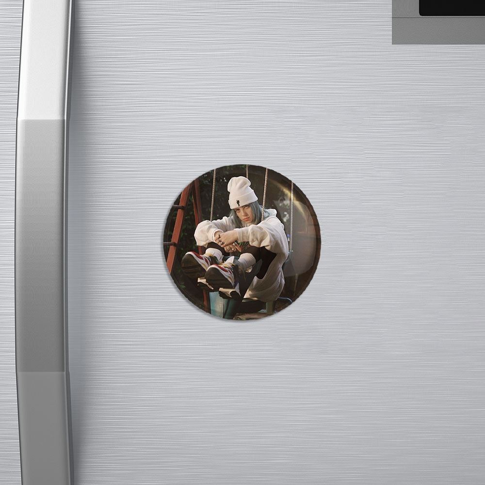 مگنت بیلی آیلیش Billie Eilish خندالو با روکش سلفون مات مخملی ضدخش و قطعه پشتی فلزی تولید شده است که آهنربای اتمی بکار برده شده در محصول، بصورت مخفی تعبیه شده ودیده نمی شود. ضمن اینکه گیرایی بسیار بالایی داشته و به هیچ عنوان از روی یخچال نمی افتد.