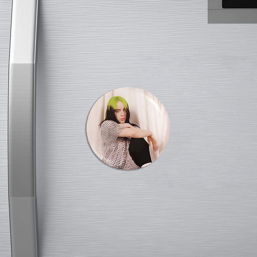 مگنت بیلی آیلیش Billie Eilish خندالو با روکش سلفون مات مخملی ضدخش و قطعه پشتی فلزی تولید شده است که آهنربای اتمی بکار برده شده در محصول، بصورت مخفی تعبیه شده ودیده نمی شود. ضمن اینکه گیرایی بسیار بالایی داشته و به هیچ عنوان از روی یخچال نمی افتد.