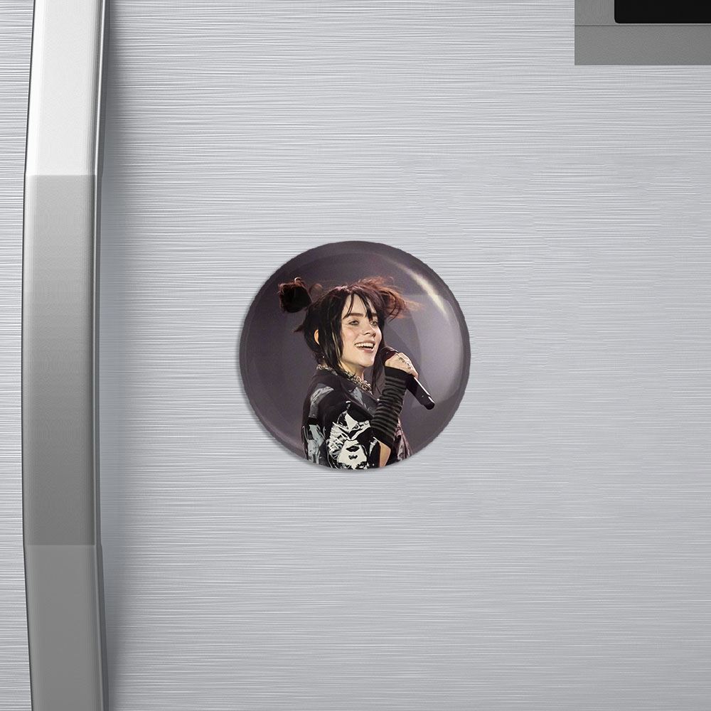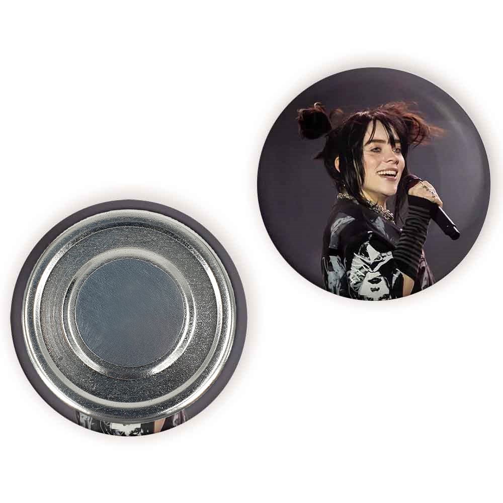 مگنت بیلی آیلیش Billie Eilish خندالو با روکش سلفون مات مخملی ضدخش و قطعه پشتی فلزی تولید شده است که آهنربای اتمی بکار برده شده در محصول، بصورت مخفی تعبیه شده ودیده نمی شود. ضمن اینکه گیرایی بسیار بالایی داشته و به هیچ عنوان از روی یخچال نمی افتد.