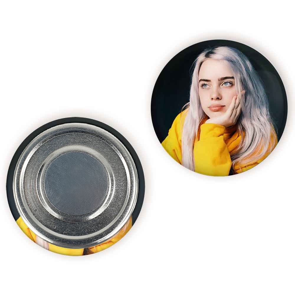 مگنت بیلی آیلیش Billie Eilish خندالو با روکش سلفون مات مخملی ضدخش و قطعه پشتی فلزی تولید شده است که آهنربای اتمی بکار برده شده در محصول، بصورت مخفی تعبیه شده ودیده نمی شود. ضمن اینکه گیرایی بسیار بالایی داشته و به هیچ عنوان از روی یخچال نمی افتد.