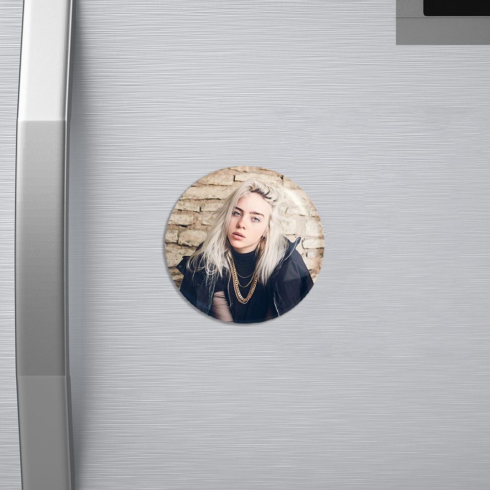 مگنت بیلی آیلیش Billie Eilish خندالو با روکش سلفون مات مخملی ضدخش و قطعه پشتی فلزی تولید شده است که آهنربای اتمی بکار برده شده در محصول، بصورت مخفی تعبیه شده ودیده نمی شود. ضمن اینکه گیرایی بسیار بالایی داشته و به هیچ عنوان از روی یخچال نمی افتد.
