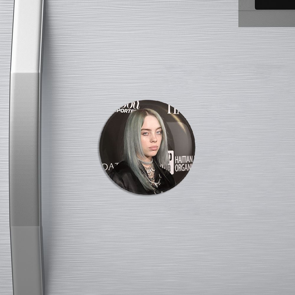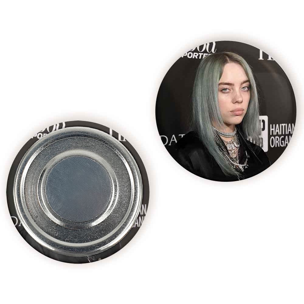 مگنت بیلی آیلیش Billie Eilish خندالو با روکش سلفون مات مخملی ضدخش و قطعه پشتی فلزی تولید شده است که آهنربای اتمی بکار برده شده در محصول، بصورت مخفی تعبیه شده ودیده نمی شود. ضمن اینکه گیرایی بسیار بالایی داشته و به هیچ عنوان از روی یخچال نمی افتد.