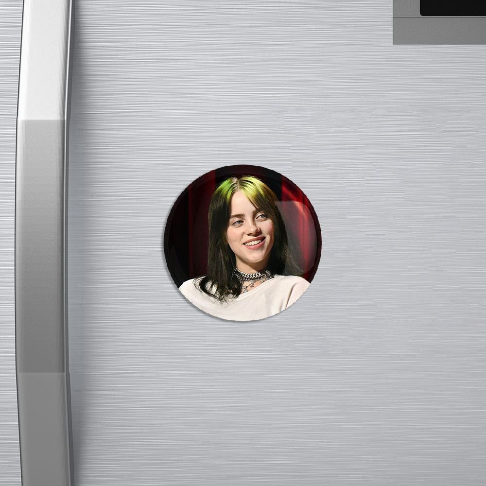مگنت بیلی آیلیش Billie Eilish خندالو با روکش سلفون مات مخملی ضدخش و قطعه پشتی فلزی تولید شده است که آهنربای اتمی بکار برده شده در محصول، بصورت مخفی تعبیه شده ودیده نمی شود. ضمن اینکه گیرایی بسیار بالایی داشته و به هیچ عنوان از روی یخچال نمی افتد.