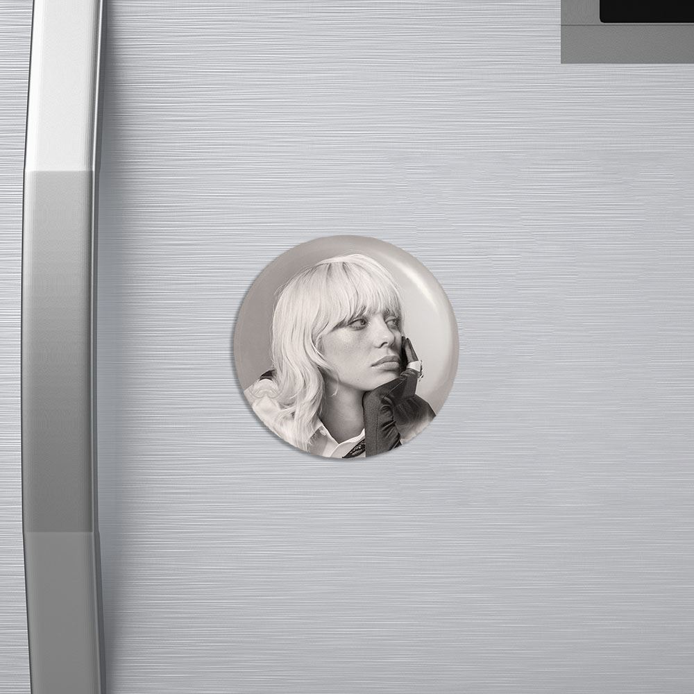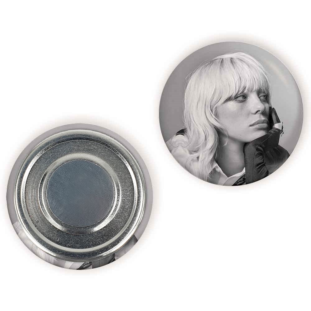 مگنت بیلی آیلیش Billie Eilish خندالو با روکش سلفون مات مخملی ضدخش و قطعه پشتی فلزی تولید شده است که آهنربای اتمی بکار برده شده در محصول، بصورت مخفی تعبیه شده ودیده نمی شود. ضمن اینکه گیرایی بسیار بالایی داشته و به هیچ عنوان از روی یخچال نمی افتد.