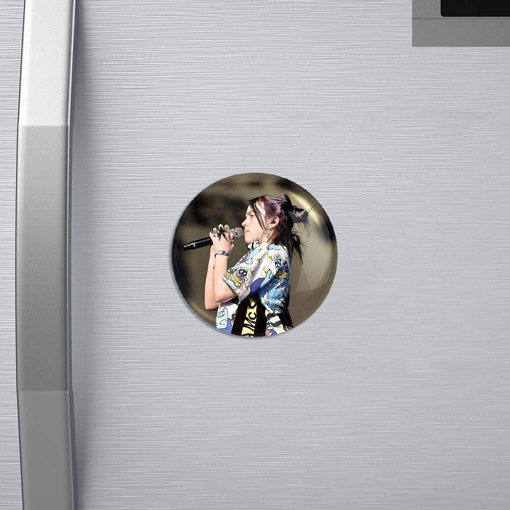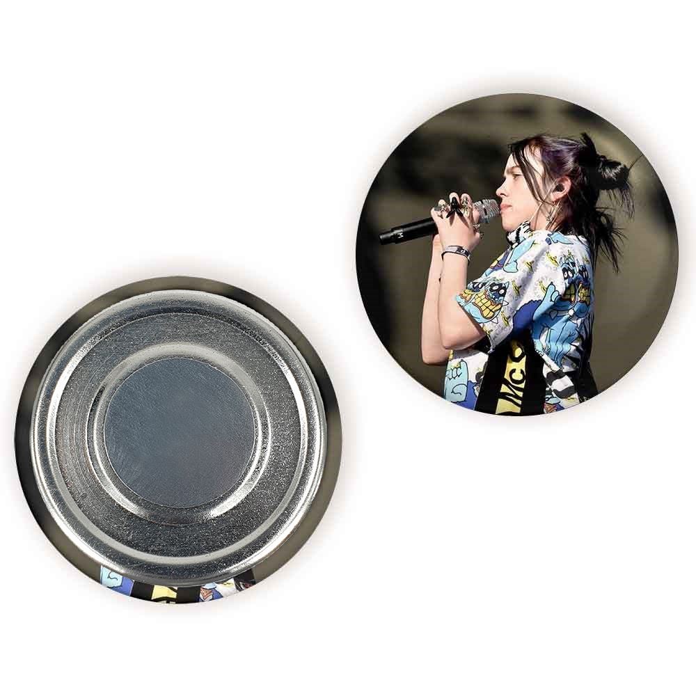مگنت بیلی آیلیش Billie Eilish خندالو با روکش سلفون مات مخملی ضدخش و قطعه پشتی فلزی تولید شده است که آهنربای اتمی بکار برده شده در محصول، بصورت مخفی تعبیه شده ودیده نمی شود. ضمن اینکه گیرایی بسیار بالایی داشته و به هیچ عنوان از روی یخچال نمی افتد.