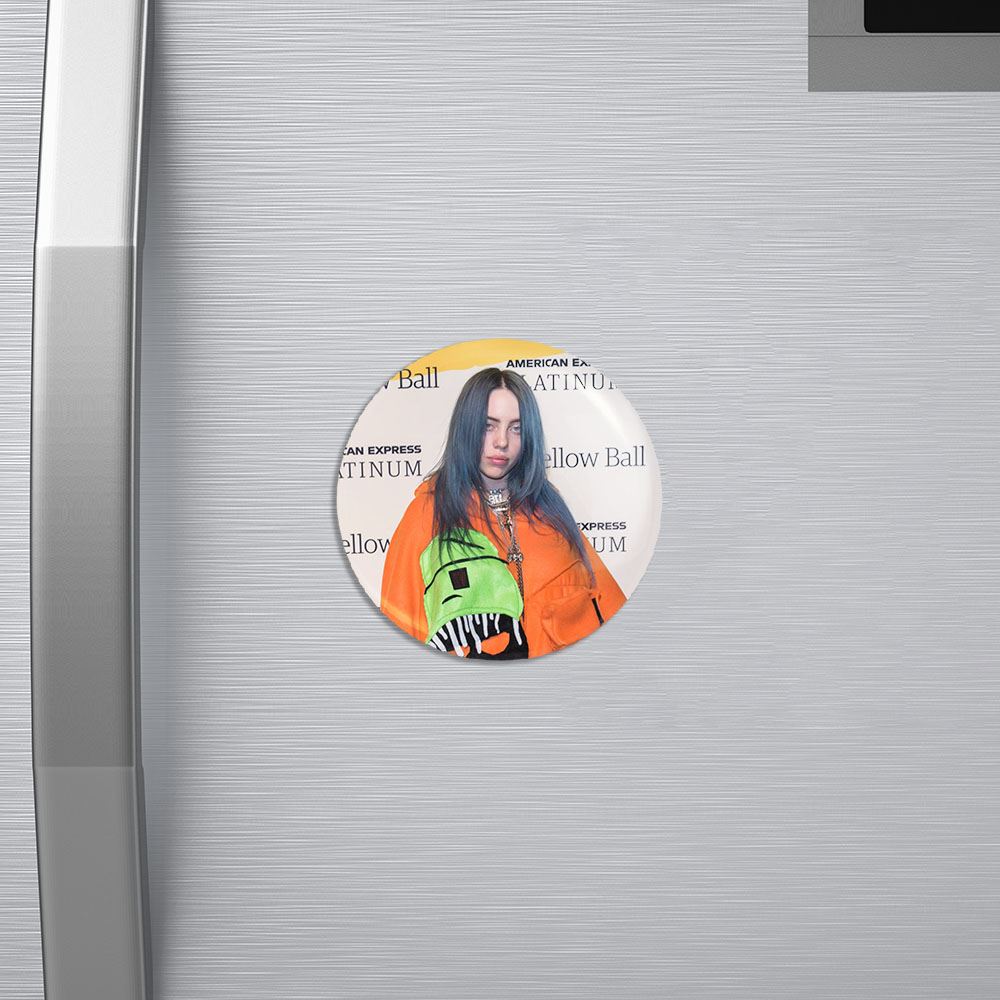 مگنت بیلی آیلیش Billie Eilish خندالو با روکش سلفون مات مخملی ضدخش و قطعه پشتی فلزی تولید شده است که آهنربای اتمی بکار برده شده در محصول، بصورت مخفی تعبیه شده ودیده نمی شود. ضمن اینکه گیرایی بسیار بالایی داشته و به هیچ عنوان از روی یخچال نمی افتد.