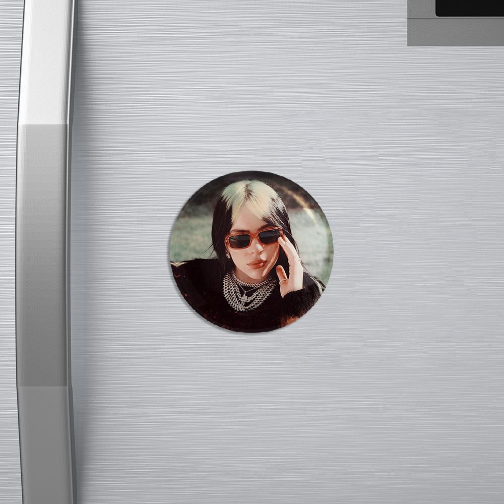 مگنت بیلی آیلیش Billie Eilish خندالو با روکش سلفون مات مخملی ضدخش و قطعه پشتی فلزی تولید شده است که آهنربای اتمی بکار برده شده در محصول، بصورت مخفی تعبیه شده ودیده نمی شود. ضمن اینکه گیرایی بسیار بالایی داشته و به هیچ عنوان از روی یخچال نمی افتد.