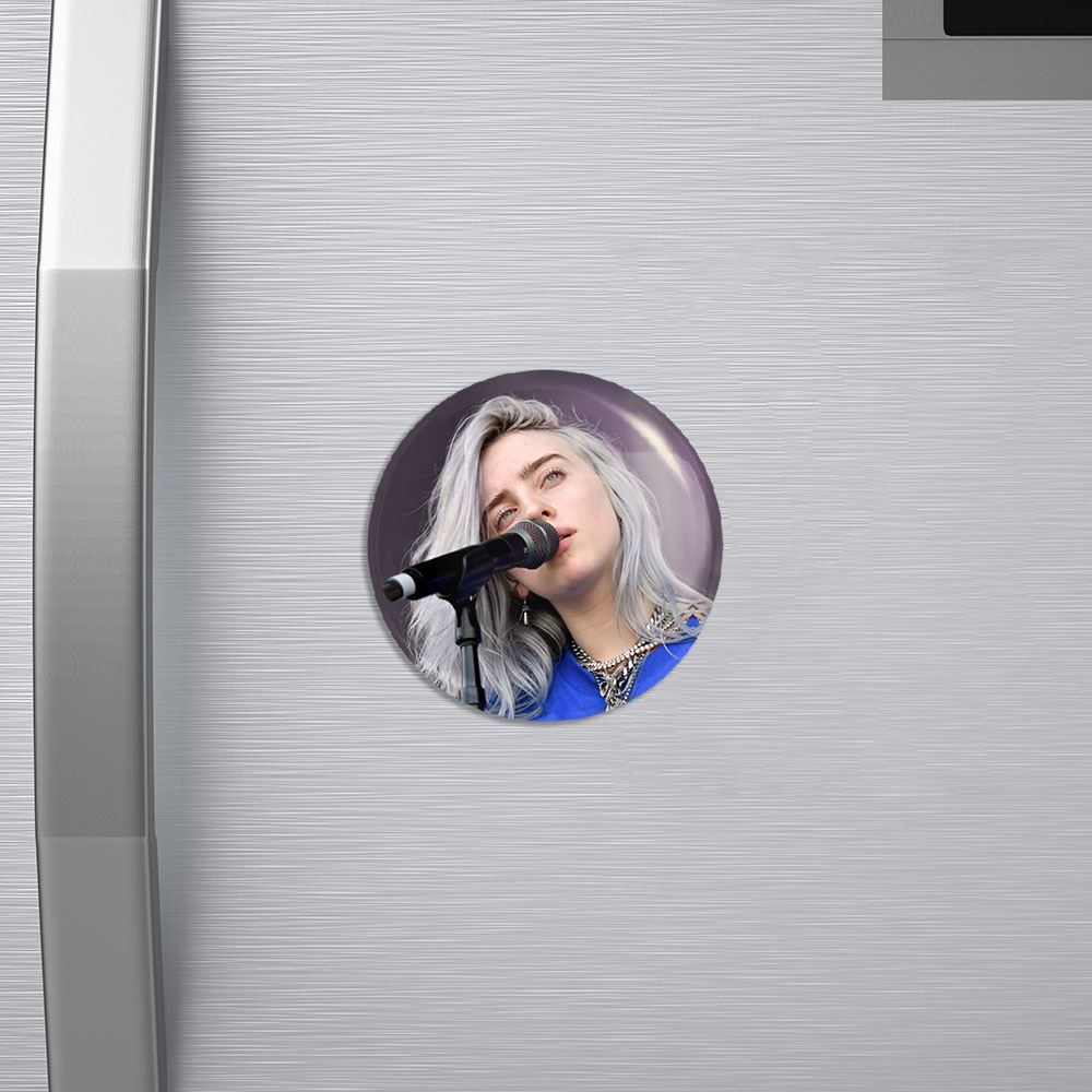 مگنت بیلی آیلیش Billie Eilish خندالو با روکش سلفون مات مخملی ضدخش و قطعه پشتی فلزی تولید شده است که آهنربای اتمی بکار برده شده در محصول، بصورت مخفی تعبیه شده ودیده نمی شود. ضمن اینکه گیرایی بسیار بالایی داشته و به هیچ عنوان از روی یخچال نمی افتد.