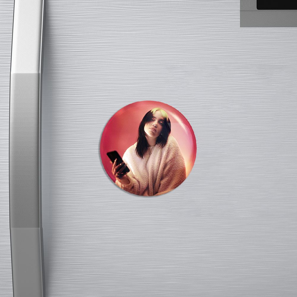 مگنت بیلی آیلیش Billie Eilish خندالو با روکش سلفون مات مخملی ضدخش و قطعه پشتی فلزی تولید شده است که آهنربای اتمی بکار برده شده در محصول، بصورت مخفی تعبیه شده ودیده نمی شود. ضمن اینکه گیرایی بسیار بالایی داشته و به هیچ عنوان از روی یخچال نمی افتد.