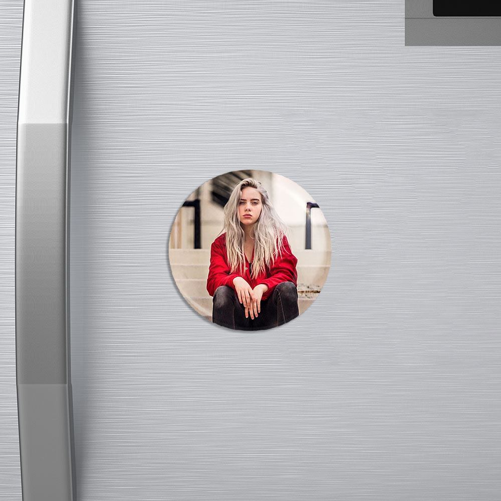 مگنت بیلی آیلیش Billie Eilish خندالو با روکش سلفون مات مخملی ضدخش و قطعه پشتی فلزی تولید شده است که آهنربای اتمی بکار برده شده در محصول، بصورت مخفی تعبیه شده ودیده نمی شود. ضمن اینکه گیرایی بسیار بالایی داشته و به هیچ عنوان از روی یخچال نمی افتد.