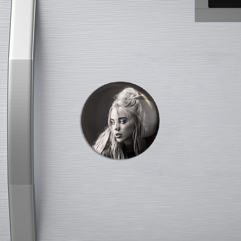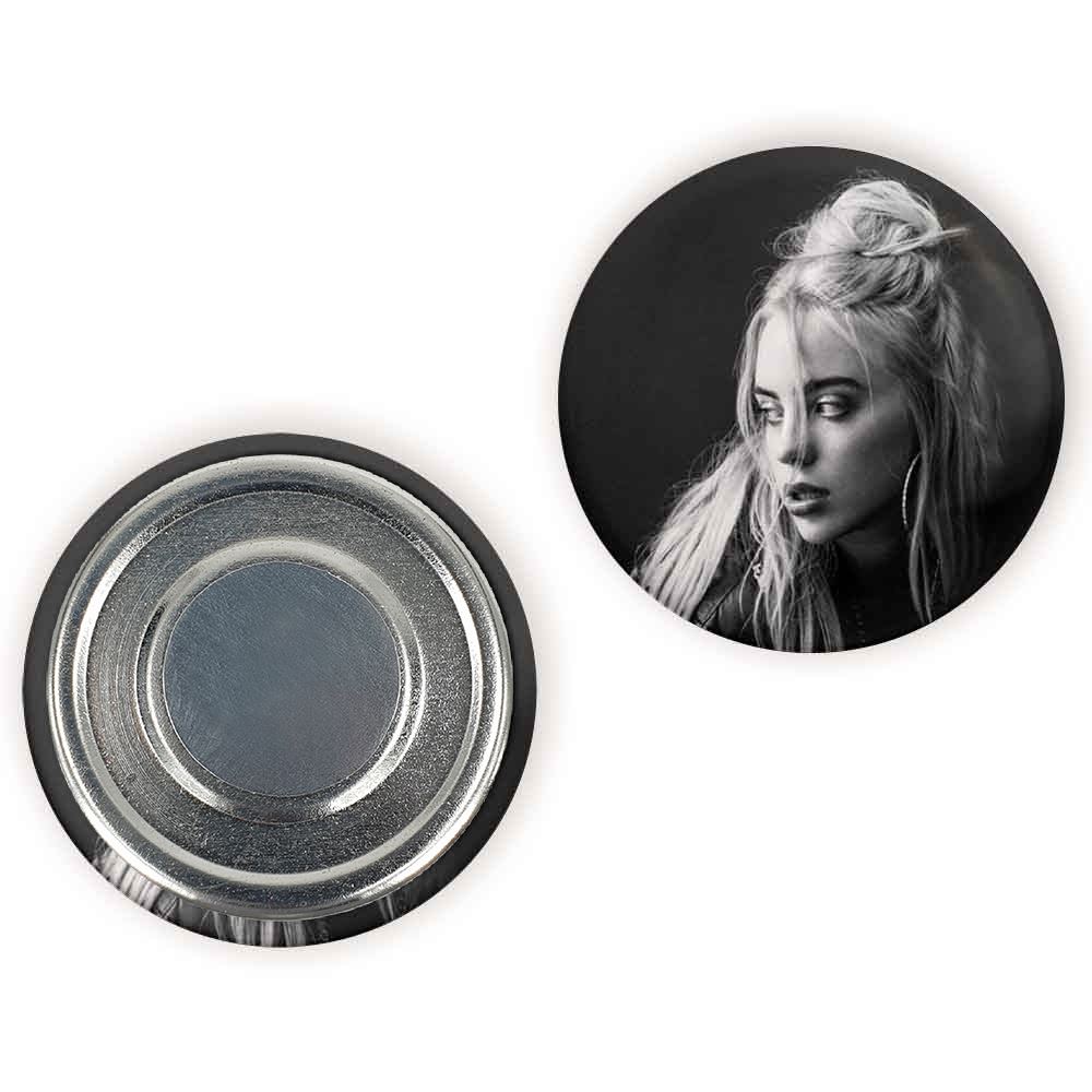 مگنت بیلی آیلیش Billie Eilish خندالو با روکش سلفون مات مخملی ضدخش و قطعه پشتی فلزی تولید شده است که آهنربای اتمی بکار برده شده در محصول، بصورت مخفی تعبیه شده ودیده نمی شود. ضمن اینکه گیرایی بسیار بالایی داشته و به هیچ عنوان از روی یخچال نمی افتد.
