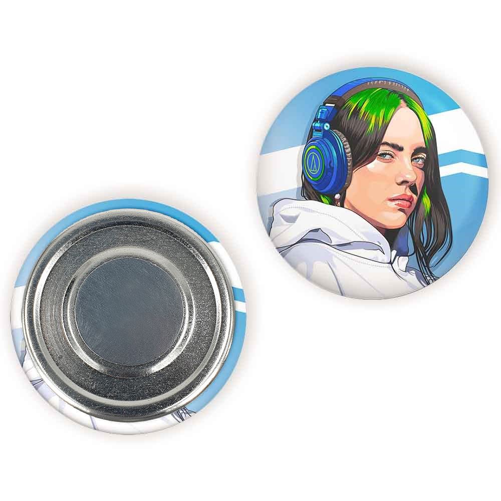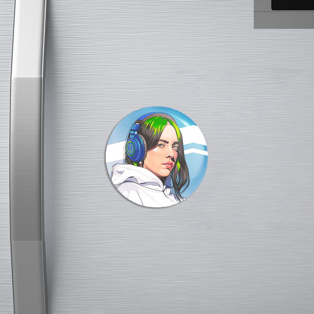 مگنت بیلی آیلیش Billie Eilish خندالو با روکش سلفون مات مخملی ضدخش و قطعه پشتی فلزی تولید شده است که آهنربای اتمی بکار برده شده در محصول، بصورت مخفی تعبیه شده ودیده نمی شود. ضمن اینکه گیرایی بسیار بالایی داشته و به هیچ عنوان از روی یخچال نمی افتد.
