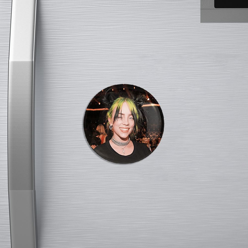 مگنت بیلی آیلیش Billie Eilish خندالو با روکش سلفون مات مخملی ضدخش و قطعه پشتی فلزی تولید شده است که آهنربای اتمی بکار برده شده در محصول، بصورت مخفی تعبیه شده ودیده نمی شود. ضمن اینکه گیرایی بسیار بالایی داشته و به هیچ عنوان از روی یخچال نمی افتد.