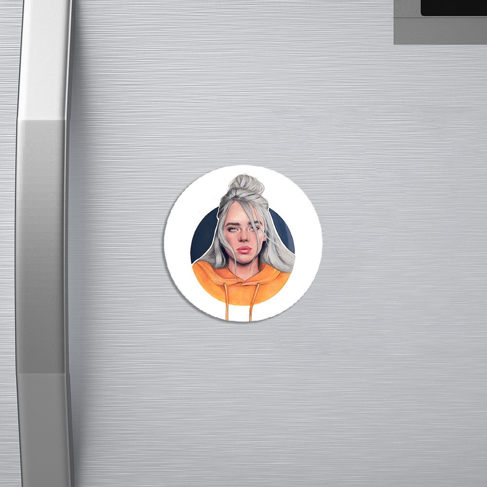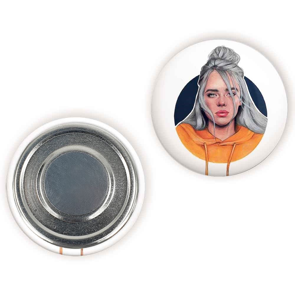 مگنت بیلی آیلیش Billie Eilish خندالو با روکش سلفون مات مخملی ضدخش و قطعه پشتی فلزی تولید شده است که آهنربای اتمی بکار برده شده در محصول، بصورت مخفی تعبیه شده ودیده نمی شود. ضمن اینکه گیرایی بسیار بالایی داشته و به هیچ عنوان از روی یخچال نمی افتد.